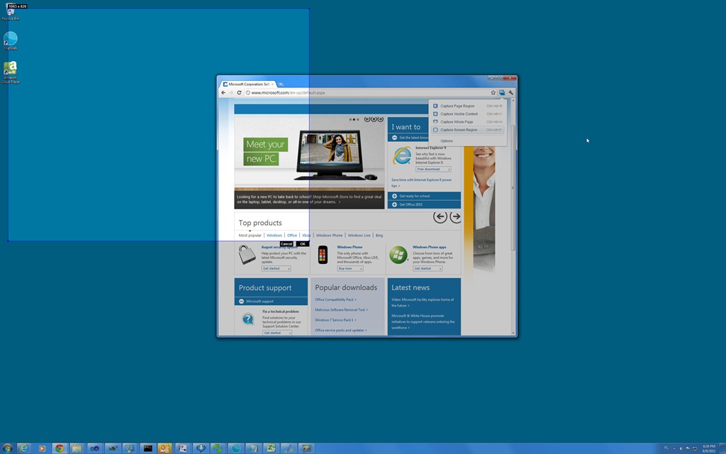 This causes the web page to become dark and a highlighted capture region will appear,that you can then move, expand, or contract as needed.