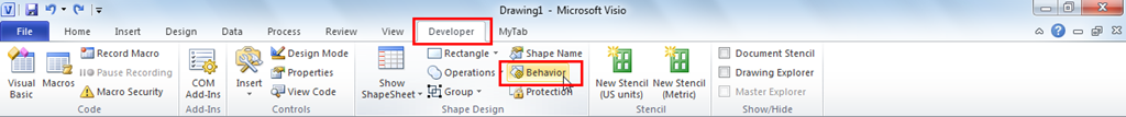 In Visio 2010, you’ll notice that the same context menu does NOT have a Behavior item