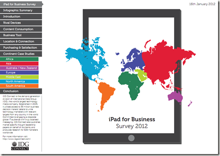Thursday, January 19, 2012 at 9:05PM This week IDG Connect published their study iPad for Business – Survey 2012.