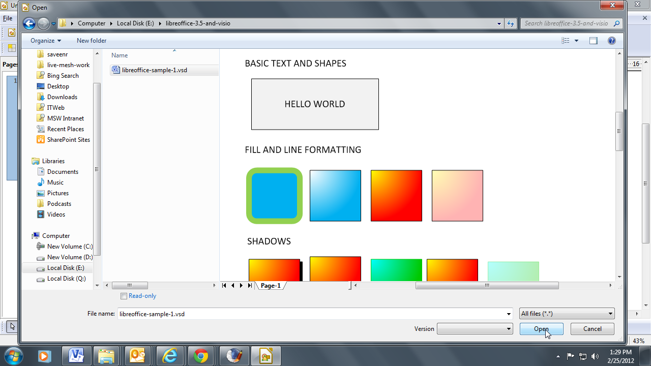 As you can see, the Open dialog can select VSD files and even provides a preview. Notice that the preview is correct – it looks exactly like the document should.