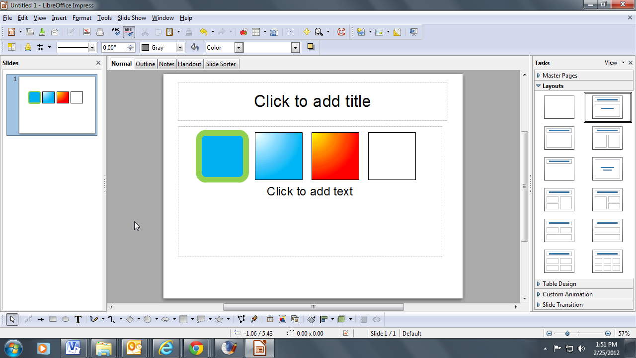 The two apps I will investigate are LibreOffice Draw and LibreOffice Impress.